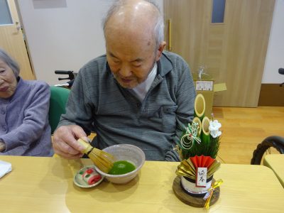 和菓子を、抹茶と一緒に召し上がりました。「早いなもう年はじめか~。」とお客様同士会話を楽しまれていました。