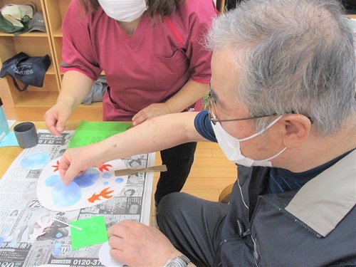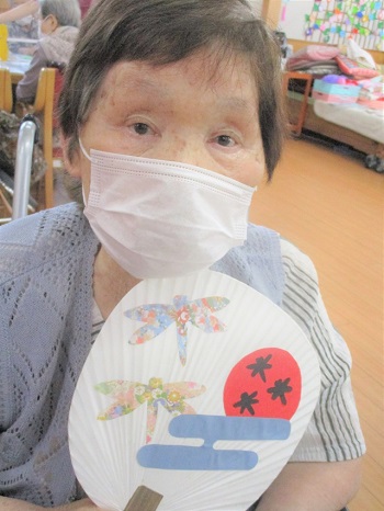 7月20日 おしどり荘通所リハビリ うちわ作りを行いました。