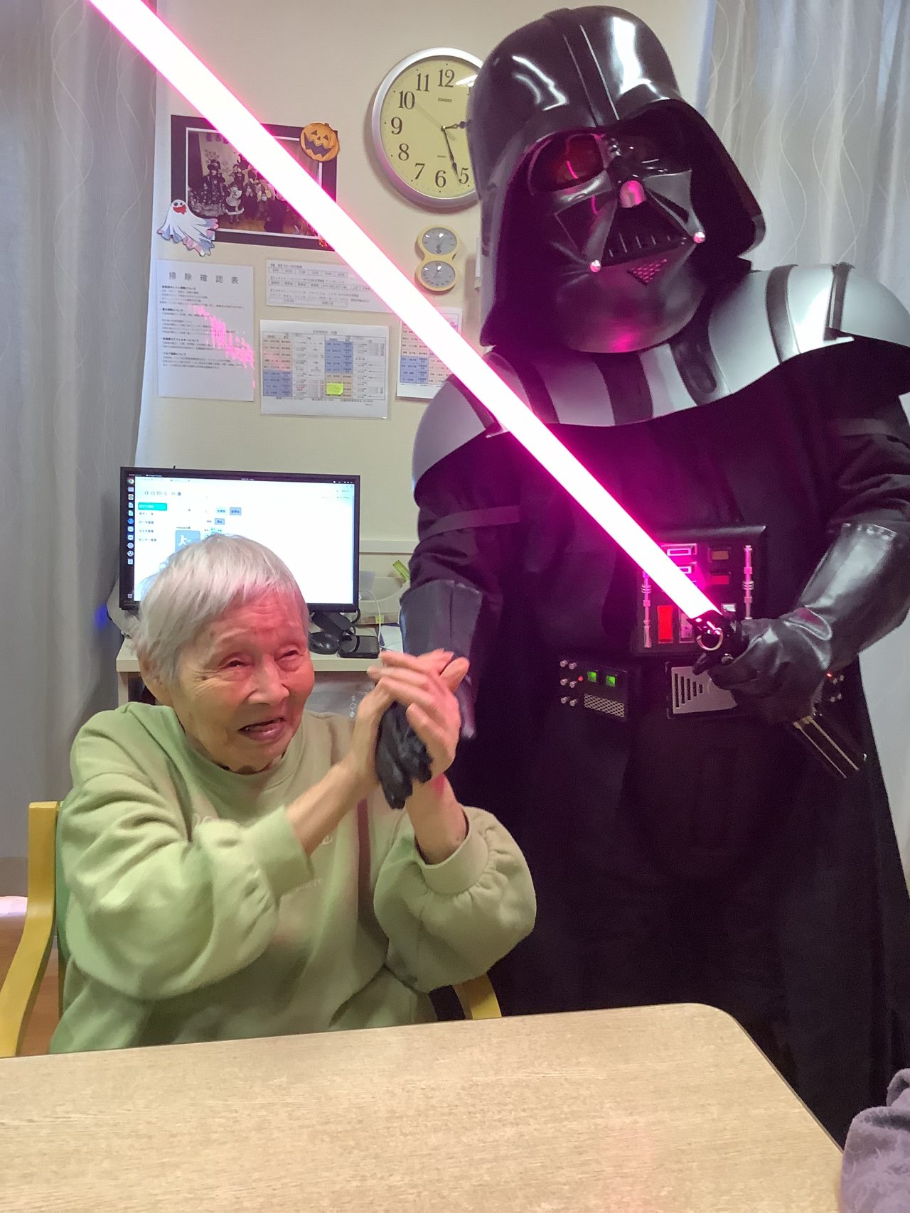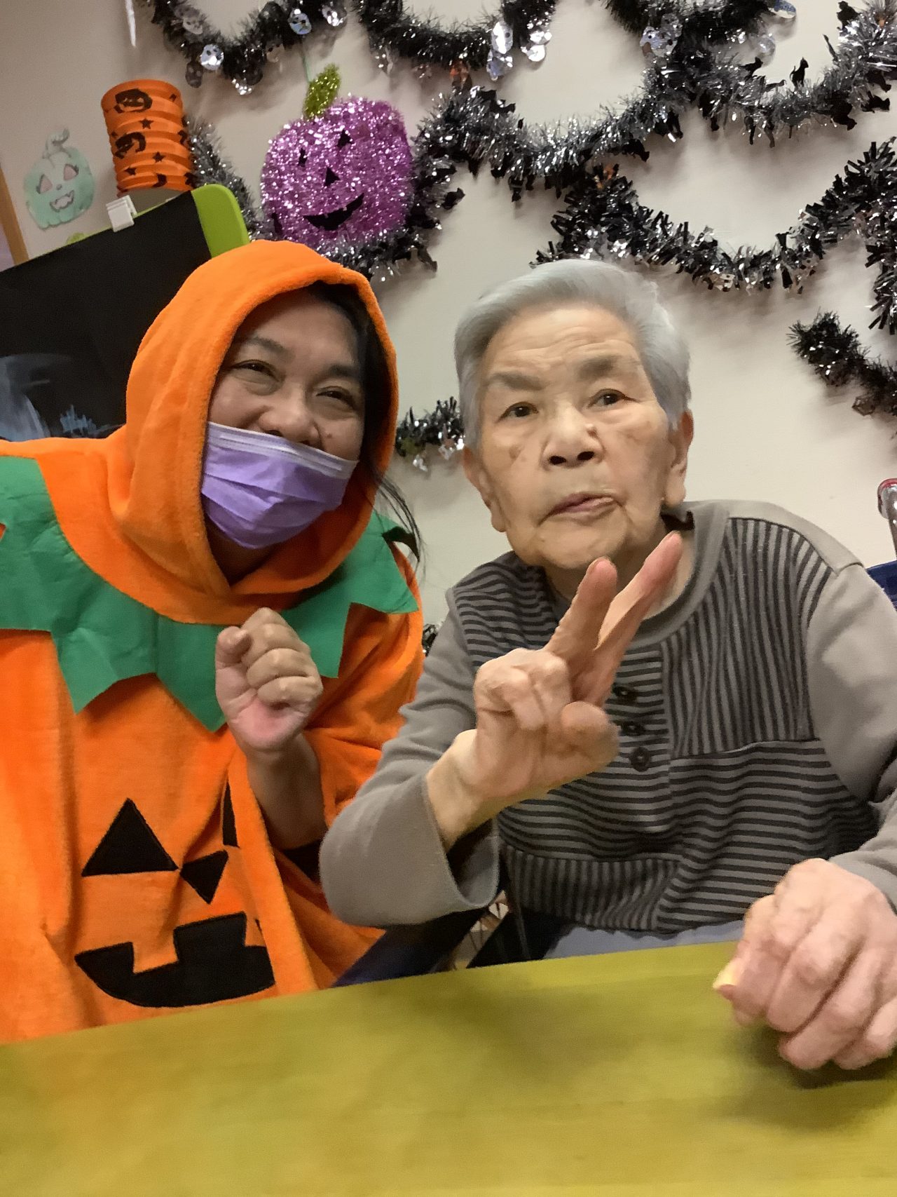 職員が仮装して登場すると「よう似合っとるよ!」声をかけてくださり、お客様も仮装をされ職員と一緒に記念撮影を楽しまれました。