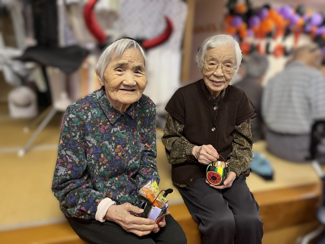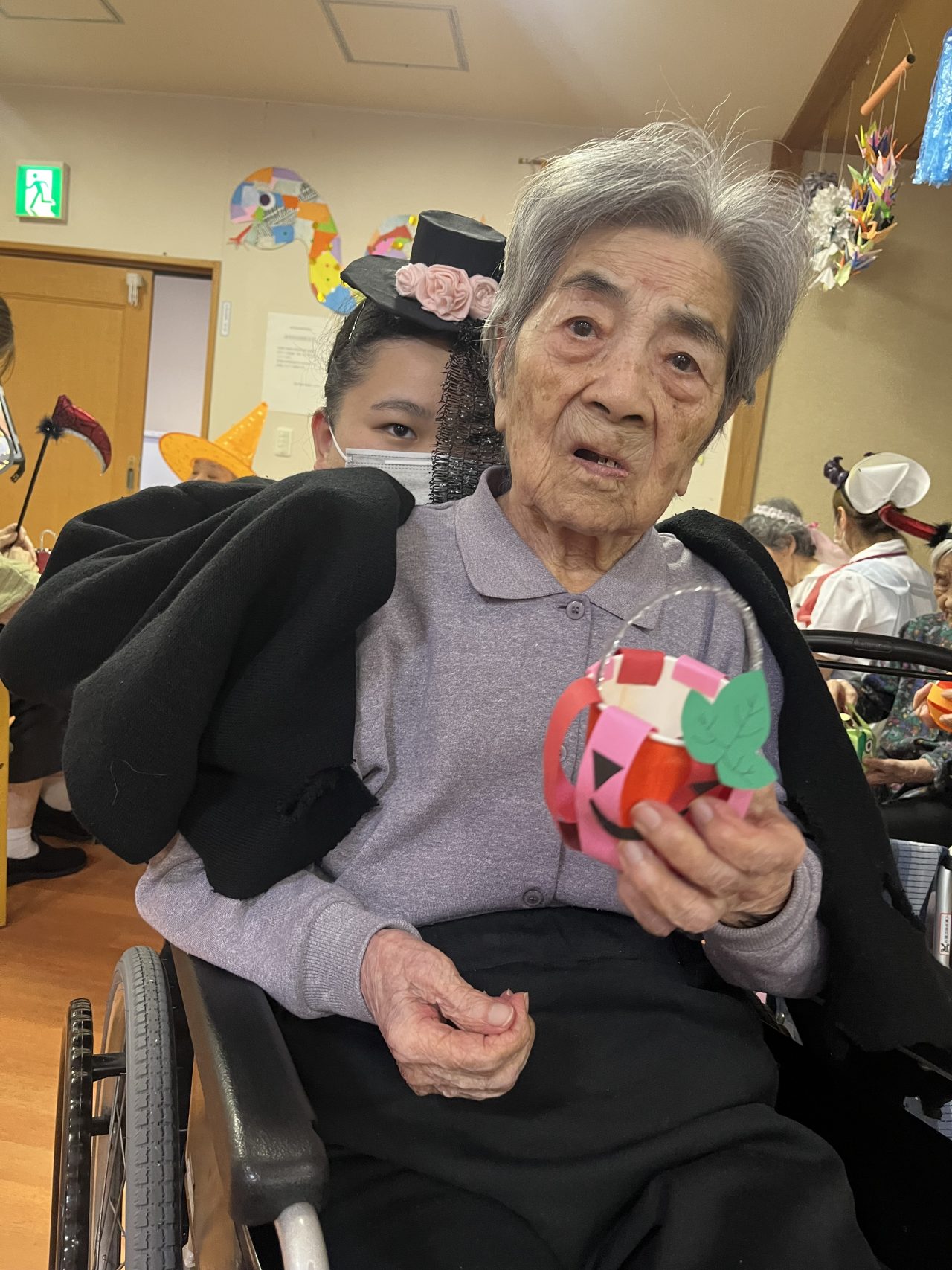 職員が仮装して登場すると「よう似合っとるよ!」声をかけてくださり、お客様も仮装をされ職員と一緒に記念撮影を楽しまれました。