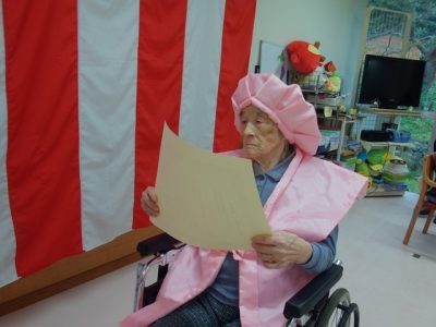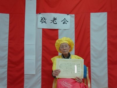 敬老会では、米寿2名、白寿1名、百寿1名、長寿1名の5名のお客様