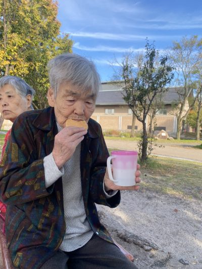 外で食べるおやつはいつもとひと味違う美味しさのようでした♪