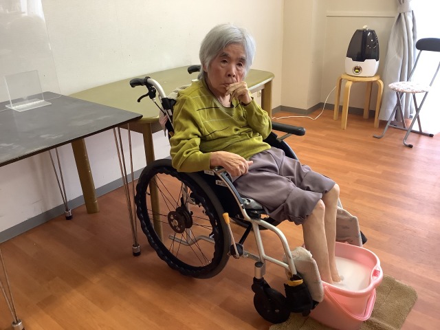 職員が丁寧にクリームを手に塗りながらマッサージを行うと「とても気持ちがええわ」と笑顔で話されるお客様も居られました。