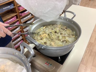 今回のお楽しみ企画はお昼にちゃんこ鍋を作り皆様に召し上がって頂きました🍲