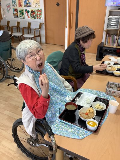 昼食に職員の手作りおにぎりとおでんを用意し皆様で召し上がりました。