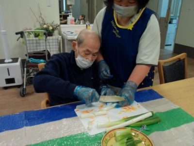 皆さんがされているのを見て「自分も切る!」とねぎ切りをされました。