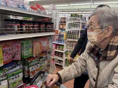 みなさんお菓子などの食品コーナーに興味津々の様子。
