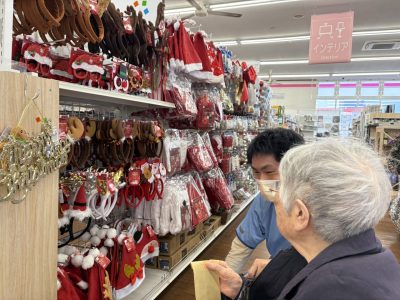 店内にはクリスマスやお正月の飾り物の商品が置かれており、