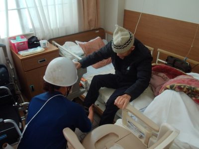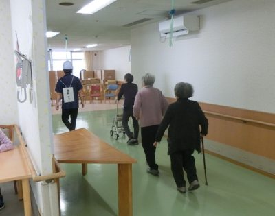 1階・2階夜勤者4名と近隣から駆けつけた職員も加わり、協力して避難誘導を行いました。
