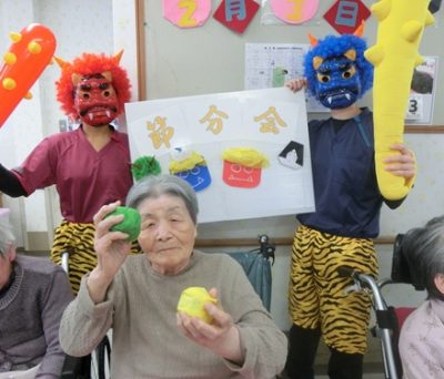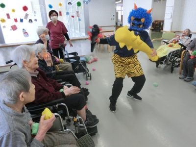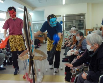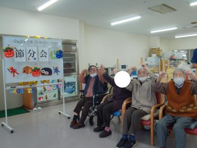 「一年間健康に過ごせますように」と願いを込めて豆まきをしました。