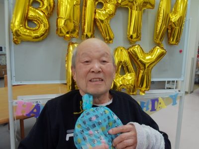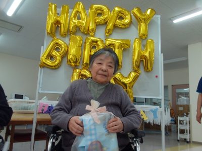 続いて、職員より誕生日プレゼントの贈呈をしました。
